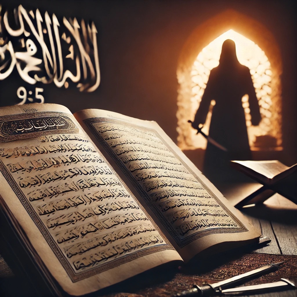 Der Vers 9:5 lautet im Wortlaut: „Und wenn die heiligen Monate abgelaufen sind, tötet die Götzendiener, wo immer ihr sie findet, und ergreift sie und belagert sie und wartet auf sie an jedem Hinterhalt.“ Dieser Vers hat in der islamischen Theologie und unter islamistischen Bewegungen eine herausragende Bedeutung, da er häufig als Rechtfertigung für den Krieg gegen Nicht-Muslime zitiert wird. Die klassische Exegese zu diesem Vers weist darauf hin, dass dieser Vers in einer Zeit der militärischen Auseinandersetzungen zwischen den frühen Muslimen und den heidnischen Arabern offenbart wurde (Ibn Kathir, 1999).